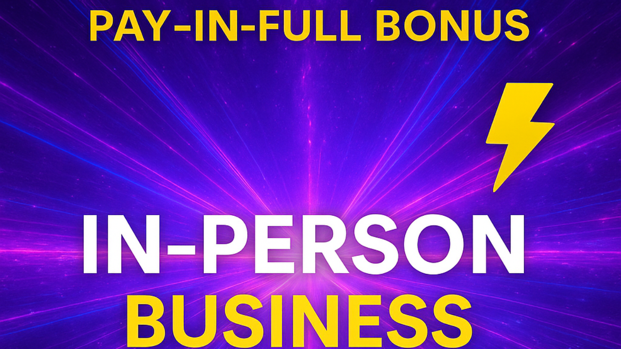 ⚠️ This bonus is ONLY available when you pay in full today. Spaces for in-person days are strictly limited - secure yours now to avoid missing out.