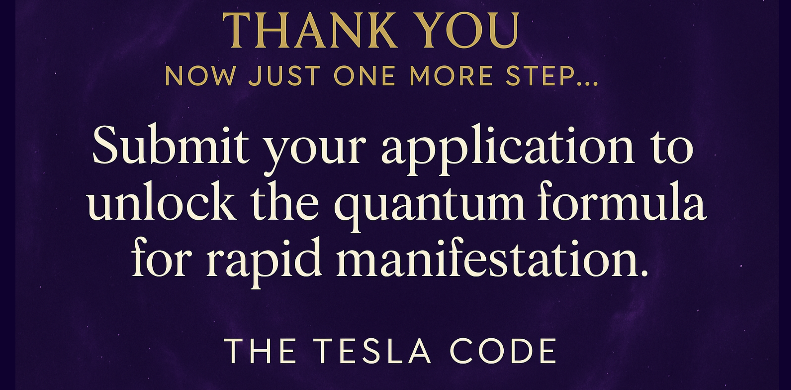 Submit Your Application - CLICK HEREYour place in The Tesla Code: 3-Day Magnetic Success Formula is waiting - but you MUST complete your application to activate your spot.