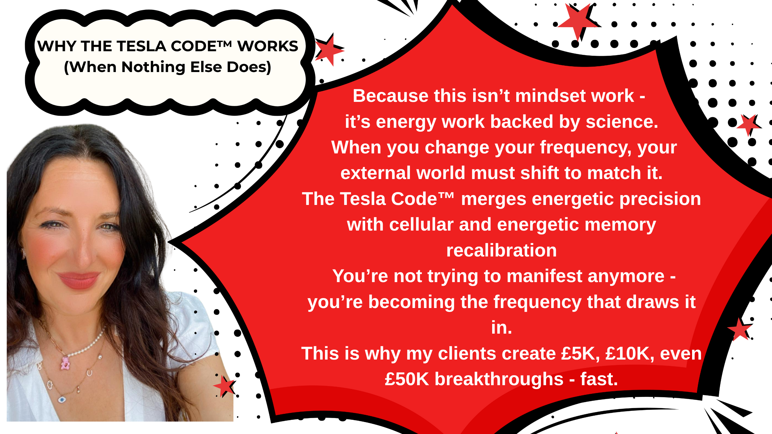 "I stopped second-guessing and just trusted my Higher Self. That same week, I hit my first £5K weekend. I didn’t hustle. I just aligned. The Tesla Code works." - Sarah J.